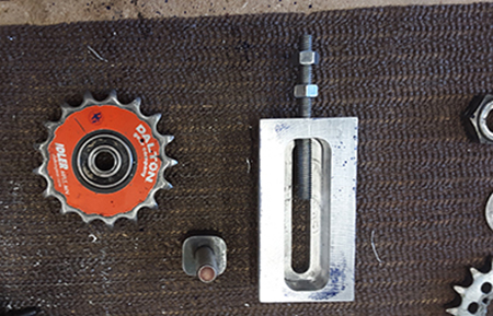 | The chain adjuster I designed and built is easy to make at track chain adjustments. The car is very hard on chains. I use a pro stock bike chain and it still stretches. I have spent many unhappy hours working on chain issues. |